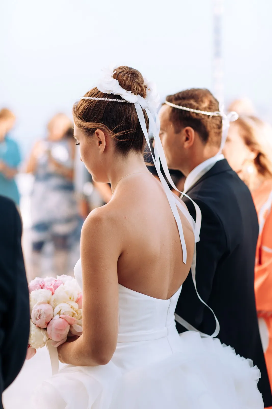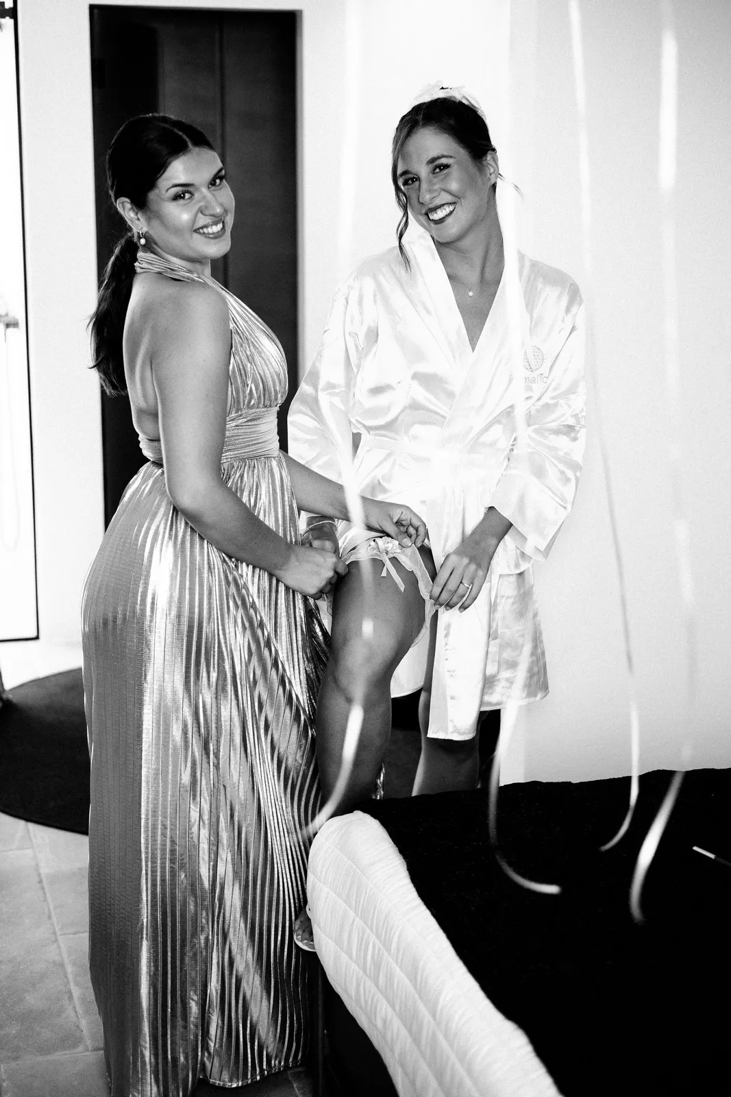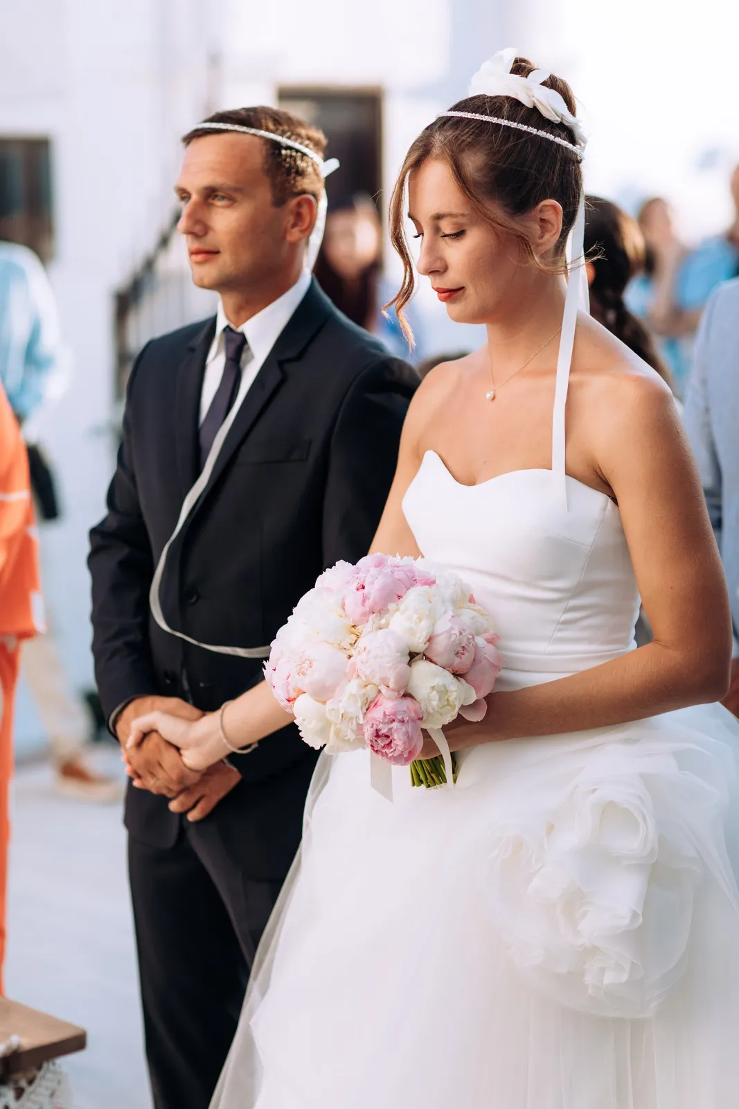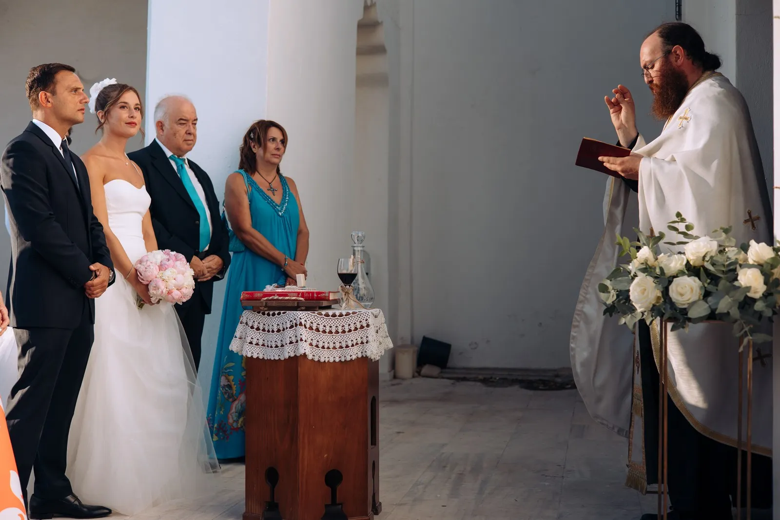 The day unfolded like a cinematic sequence. Inside the historic villa, Evgenia prepared in an atmosphere of soft light and quiet anticipation, every detail reflecting understated sophistication. Her look effortless yet striking perfectly echoed the setting. At the same time, Dario, alongside his closest friends, embraced the calm excitement of the day, sharing moments that felt genuine and unfiltered.